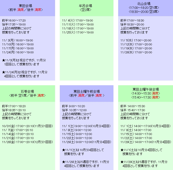 ++ 授業日のお知らせ ++ ![]()