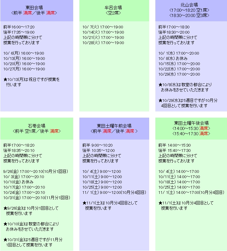 ++ 授業日のお知らせ ++ ![]()